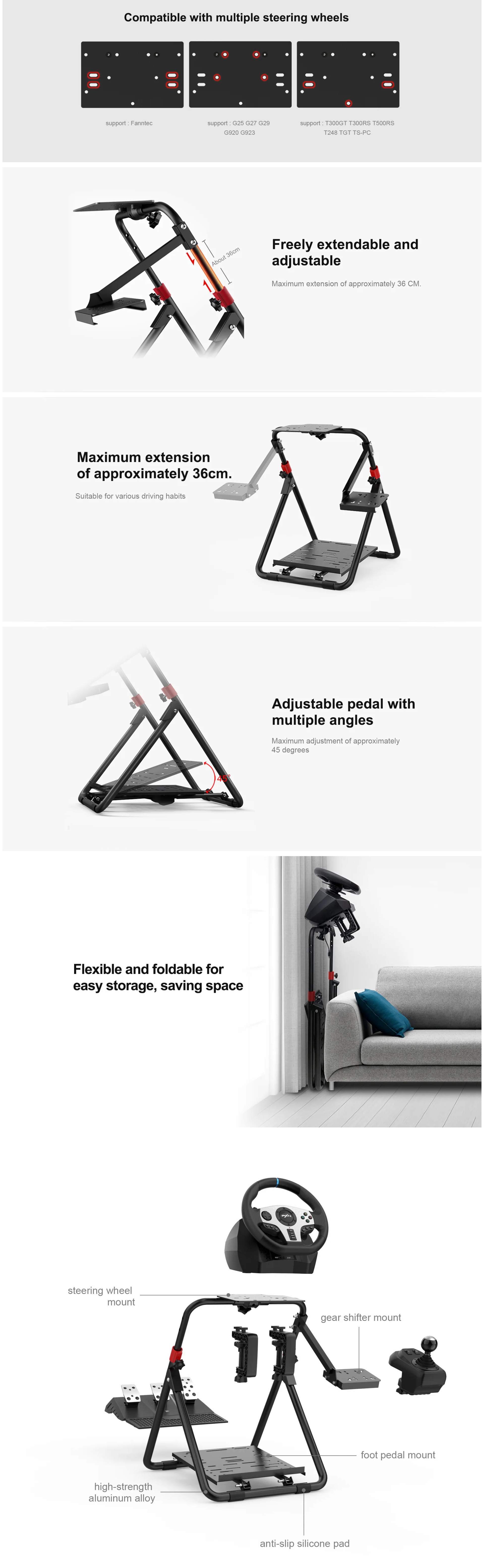 - Fast folding, convenient storage and no space occupation: easy installation, ready to use, easy to open, no tools required for assembly. (Excluding game steering wheel, game pedal, game joystick).