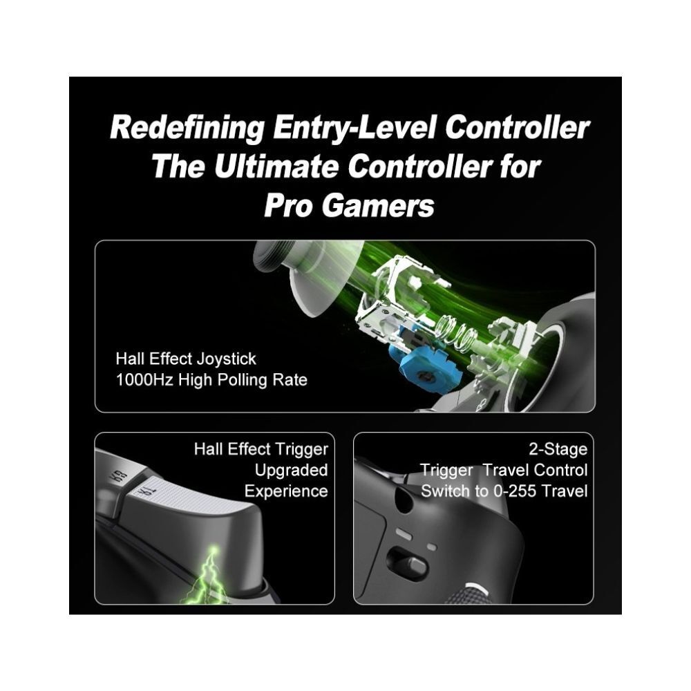 - 1000Hz Hall joystick and 256-level Hall triggers for fast response and precise control.