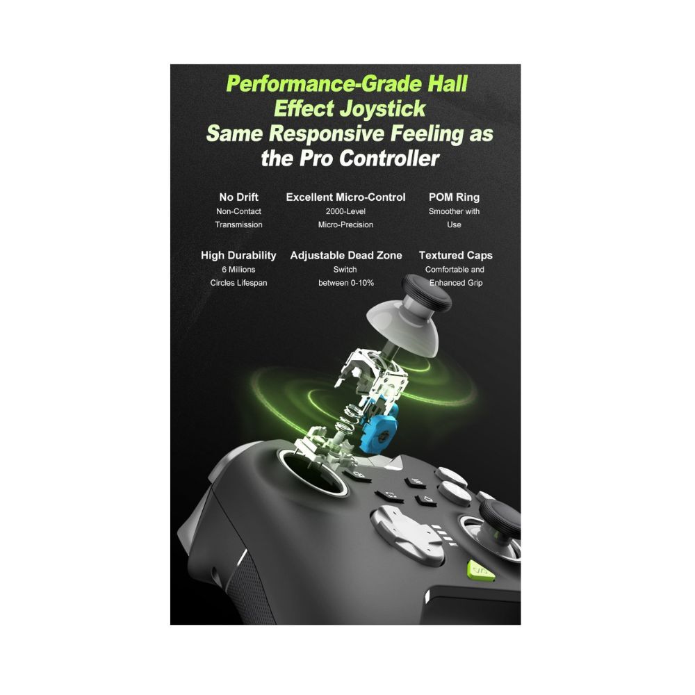 Connect using wired, Bluetooth or 2.4G wireless modes for versatile play. Four macro back buttons support combinations of up to 32 actions, while the built-in six-axis gyroscope adds motion control for immersive gameplay. A 1000mAh battery provides extended use between charges.
