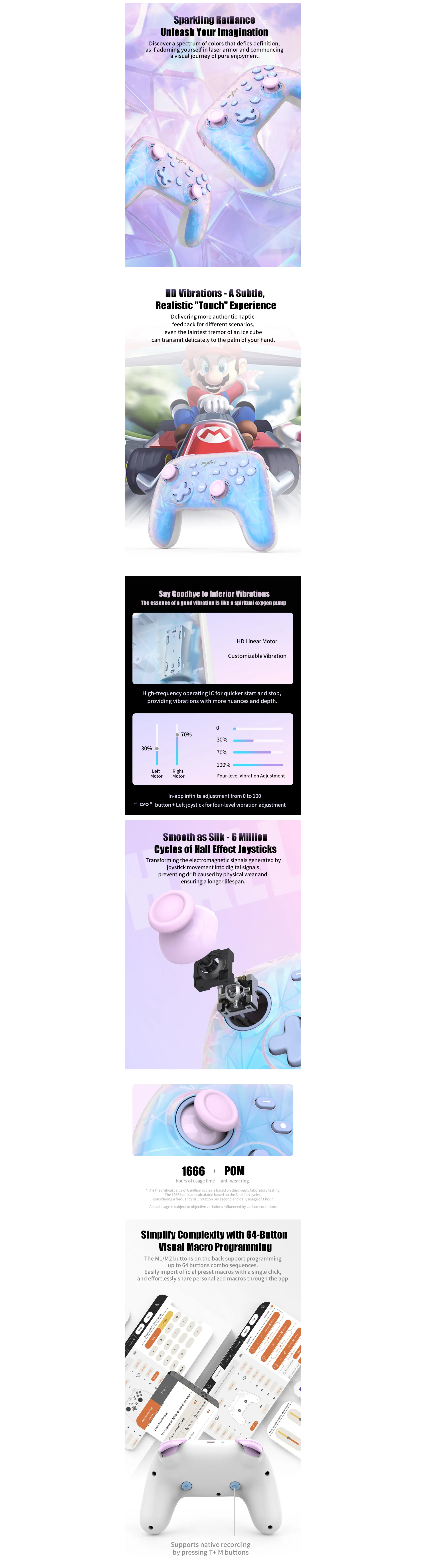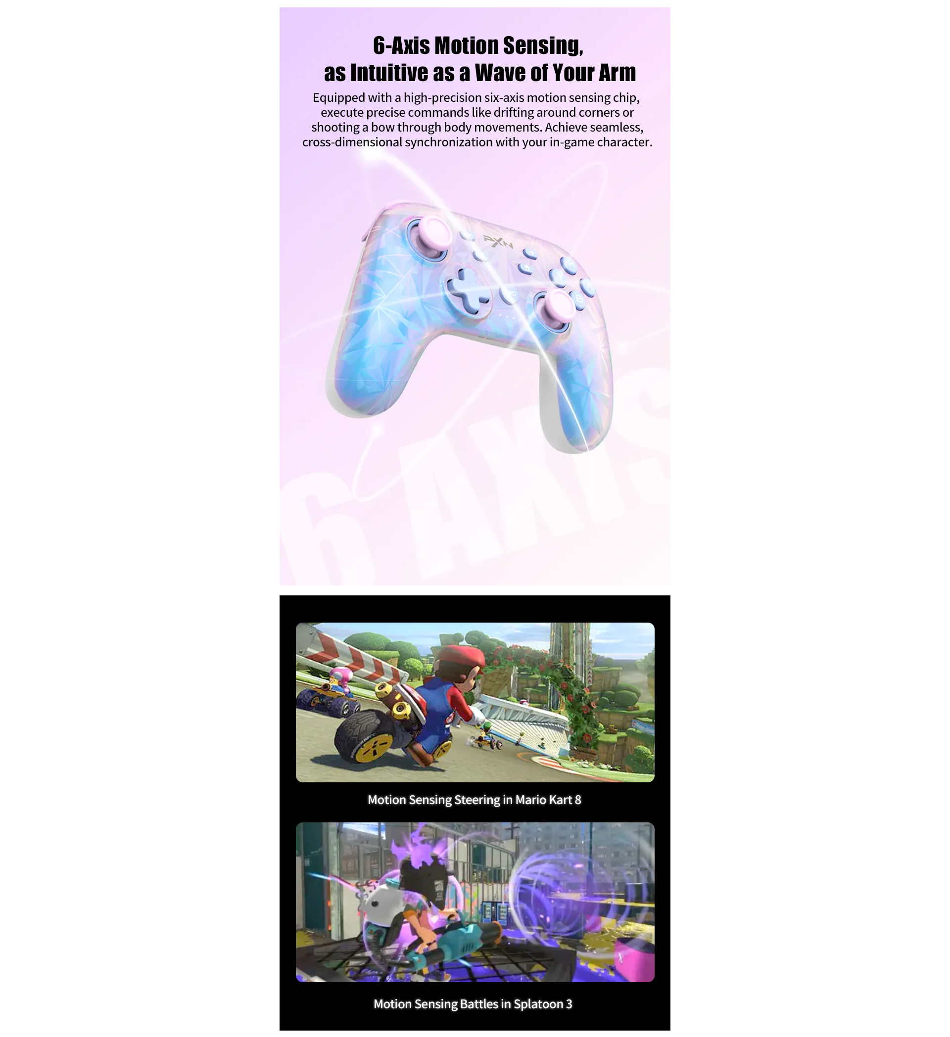 PXN P50S Wireless Controller Stardust Pink for Switch 1 and 2 PC Phones with Gyro NFC Macro Buttons