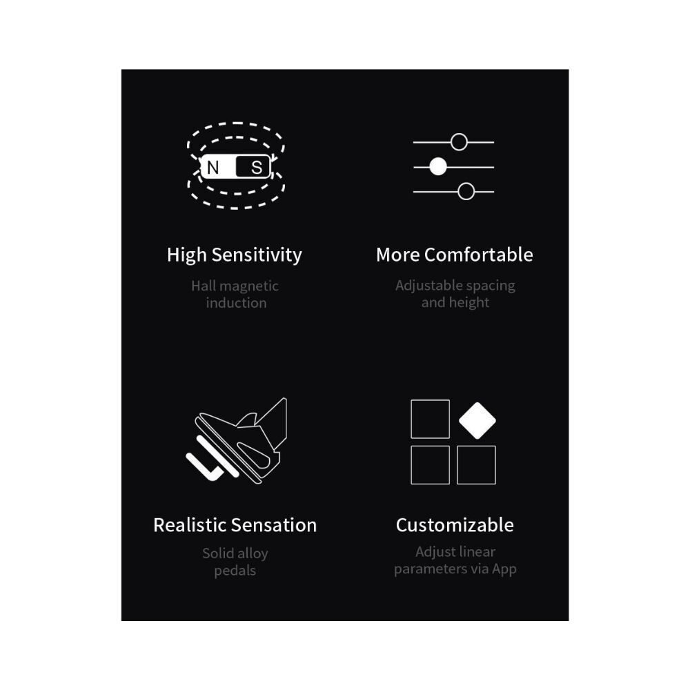According to personal preferences, customize the pedals linear travel to experience varying foot feedback sensations on different tracks and with different car models, highly simulating a real foot feel.