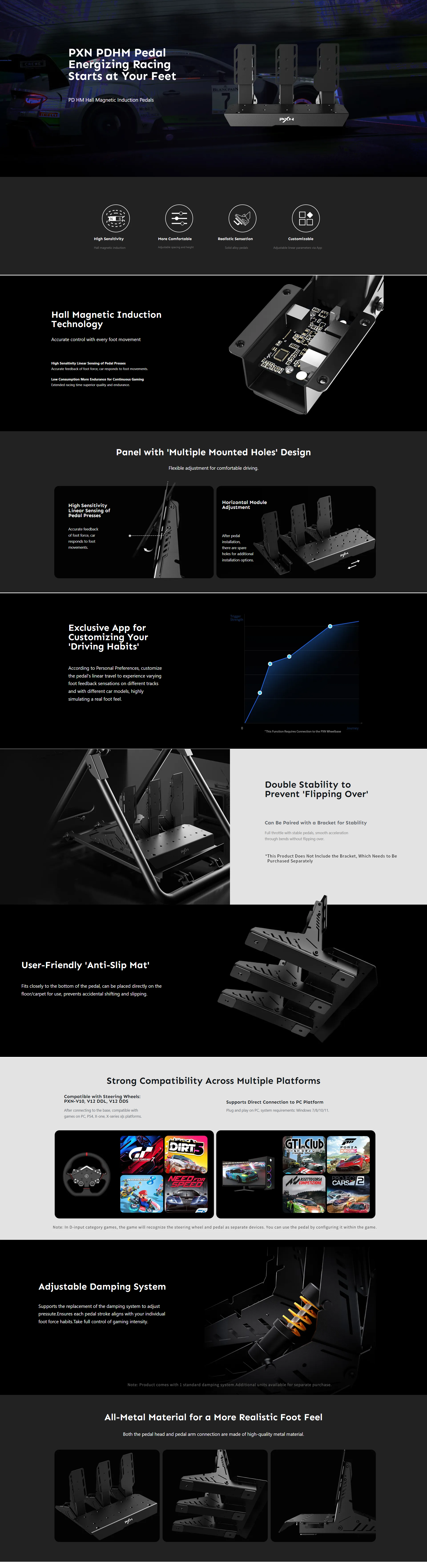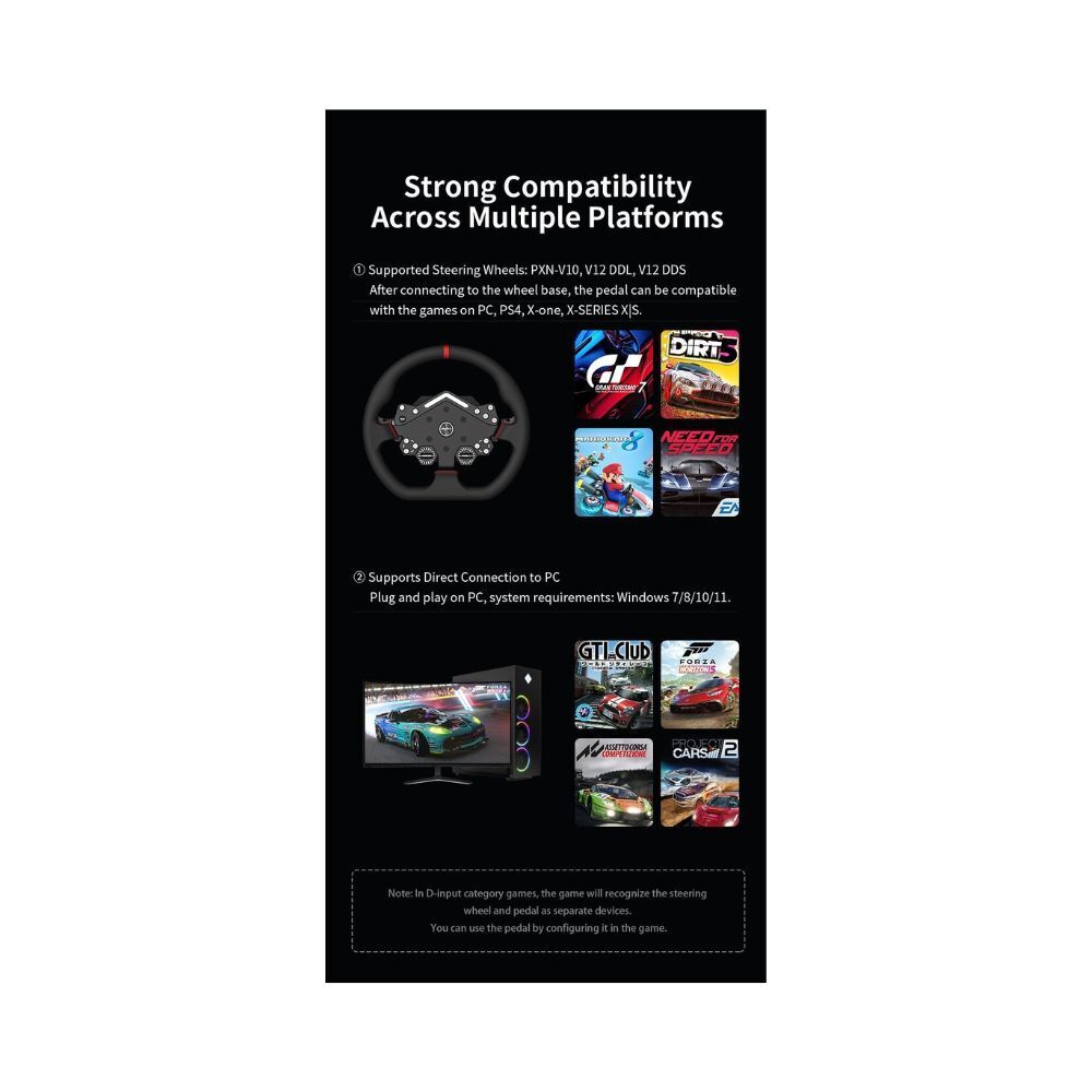 PXN-PD HM Premium Triple Racing Pedals Adjustable Black Hall Effect V10 V12 PC PS4 PS5 Xbox One