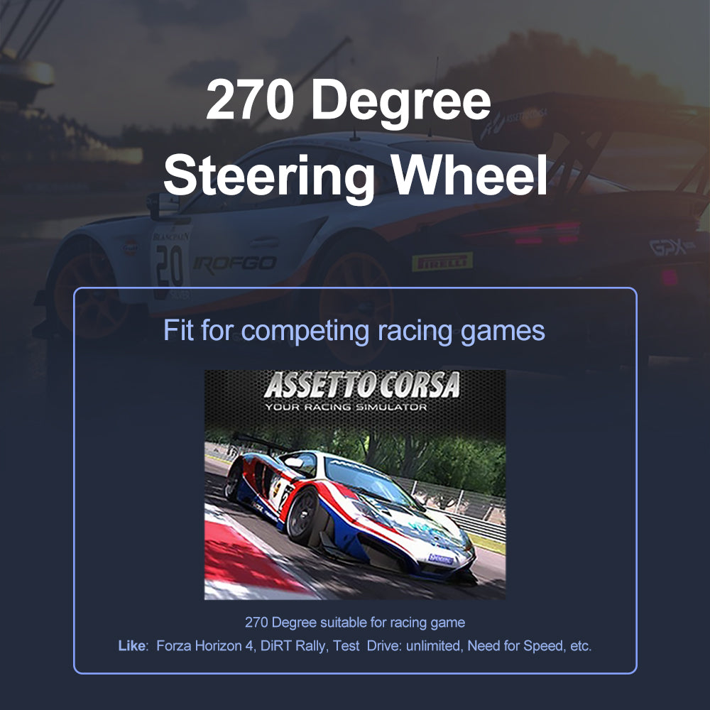 The steering wheel can be turned two and a half times, the same degree as the steering wheel of a car. Physically flexible to switch between 270 degree and 900 degree steering wheel rotation angles
