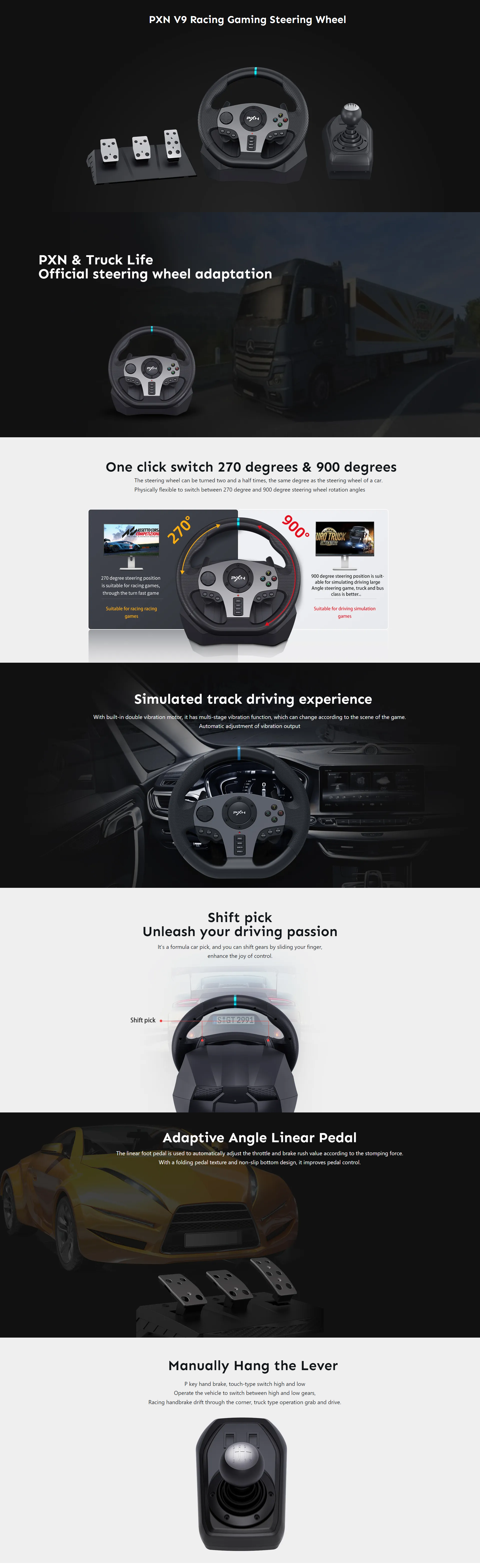 PXN V9 Racing Wheel Switch 1 2 PS4 Xbox Series X S PC 270 900 Rotate Shifter Pedals Vibrate App