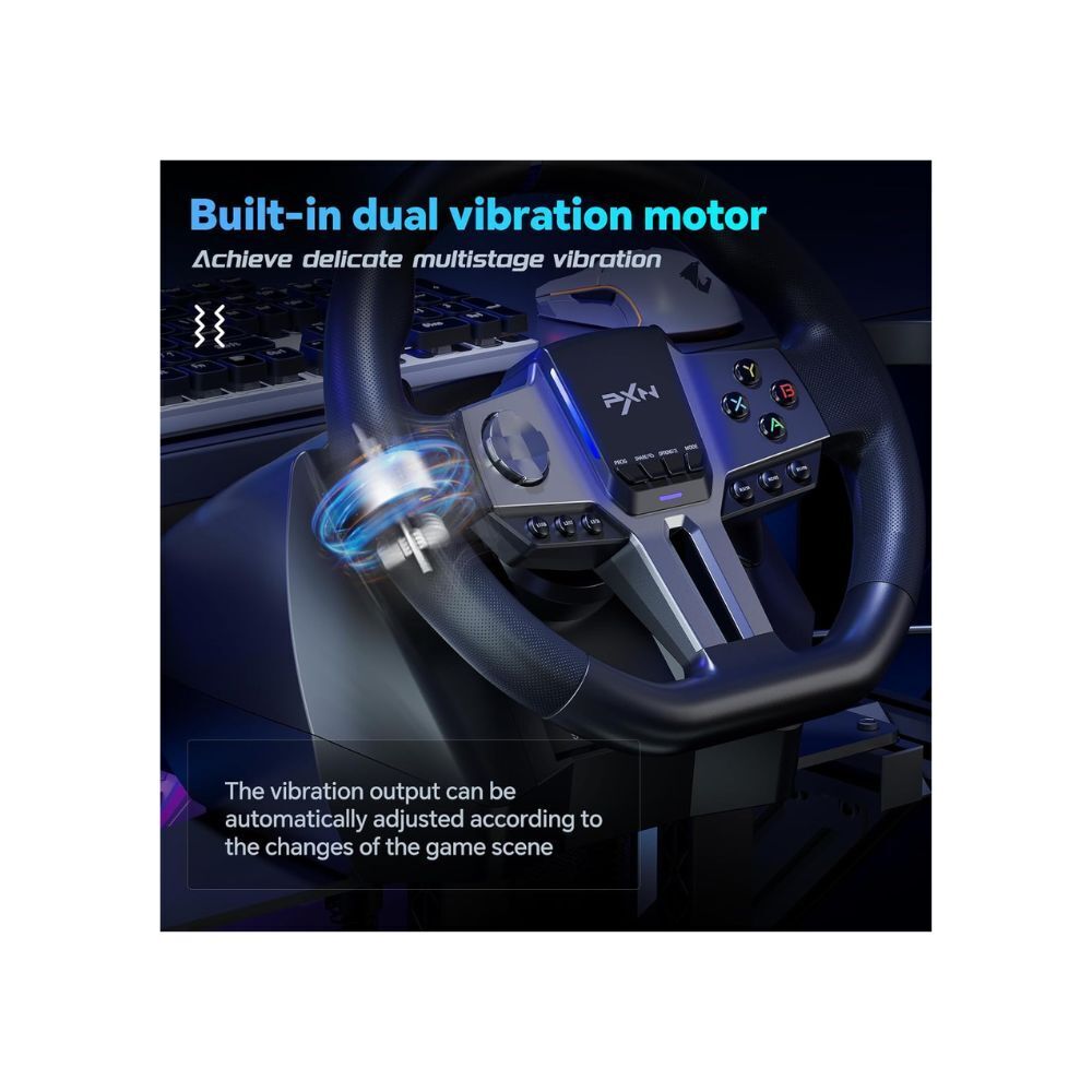 - Realistic Racing Wheel Design: Built-in dual vibration motors automatically adjust vibration output according to game scenarios, providing nuanced multi-level vibrations for a more immersive driving experience. The formula-style dual paddle shifters allow for easy gear changes with just a finger slide, making you feel like you're on the track, significantly enhancing the fun of control!