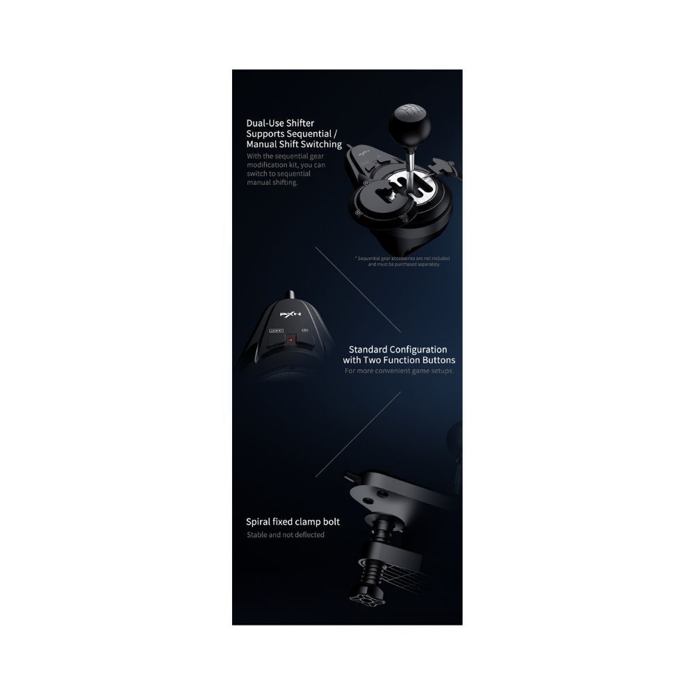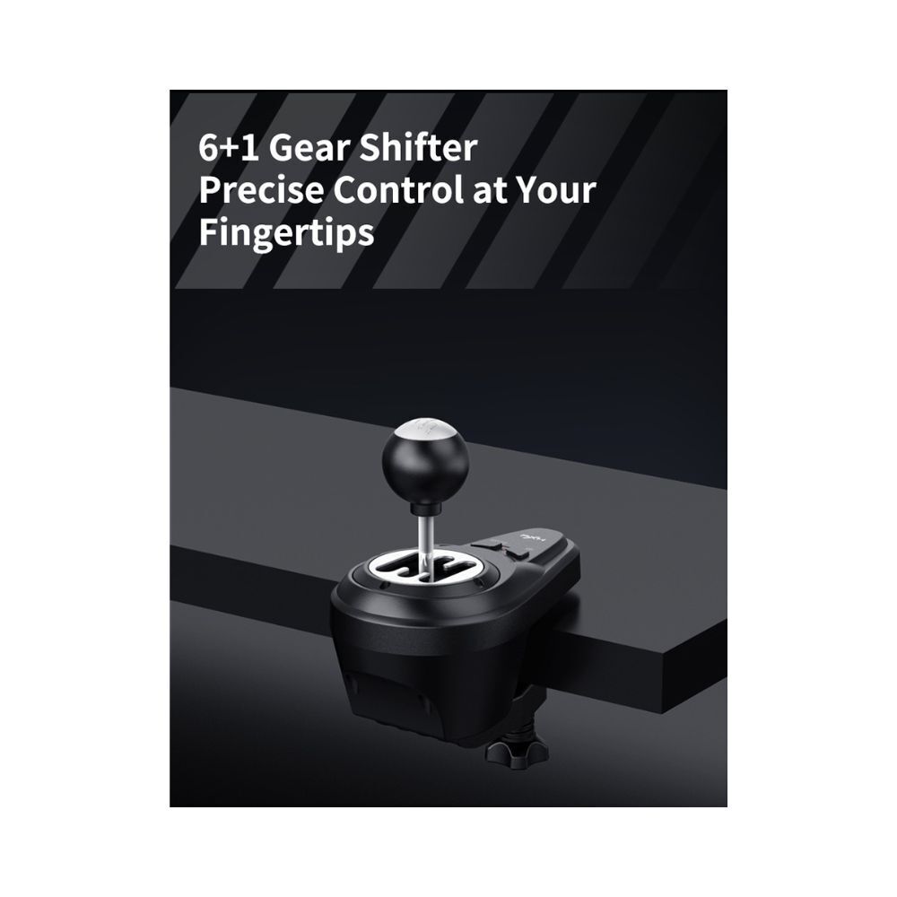 - High-End Racing Simulator: The PXN-V99 force feedback steering wheel features a 270/900 degree one-button switch, a detachable steering wheel, a dual-pad design, a magnetic induction foot pedal, a 6+1 hanging block board, and a tripod. The pedal strength is adjustable, and the pedal angle can be adjusted in multiple segments. The 6+1 hanging gear allows for down-voltage reversing.