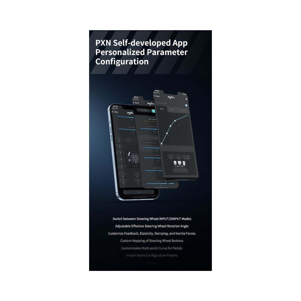 - Dedicated App: The self-developed PXN Wheel App allows for one-button import of game settings, steering wheel angle adjustment, force feedback setting adjustment, steering wheel button mapping, preset key position configuration, and steering wheel button testing. Players can search for PXN V Series on their mobile phones to download and install the app.
