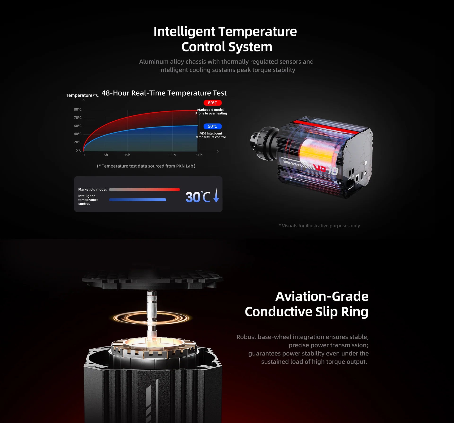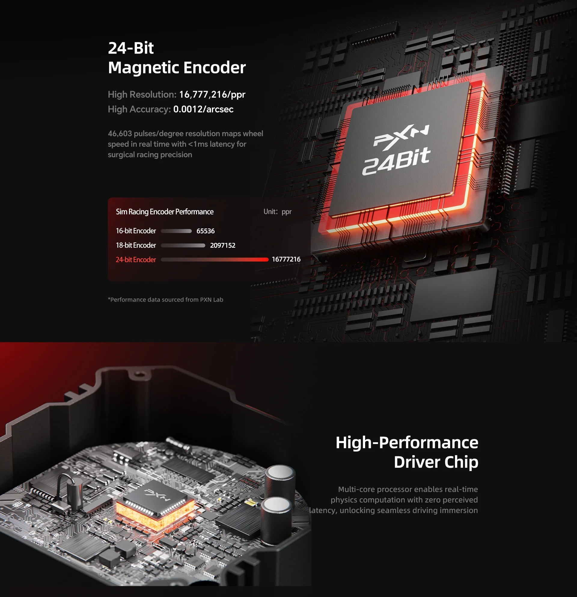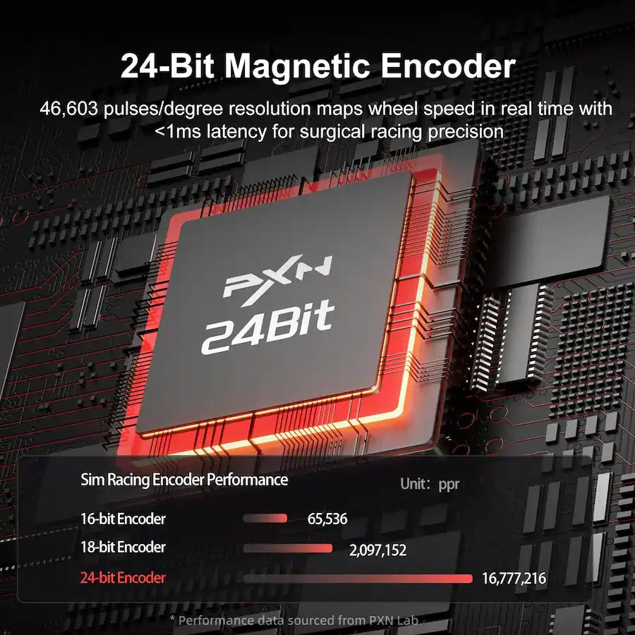 A 24-bit high-precision magnetic encoder ensures accurate input, while the adjustable 902700 degree steering range lets you tune the response for different racing styles. The intelligent temperature control system keeps performance stable during extended sessions.