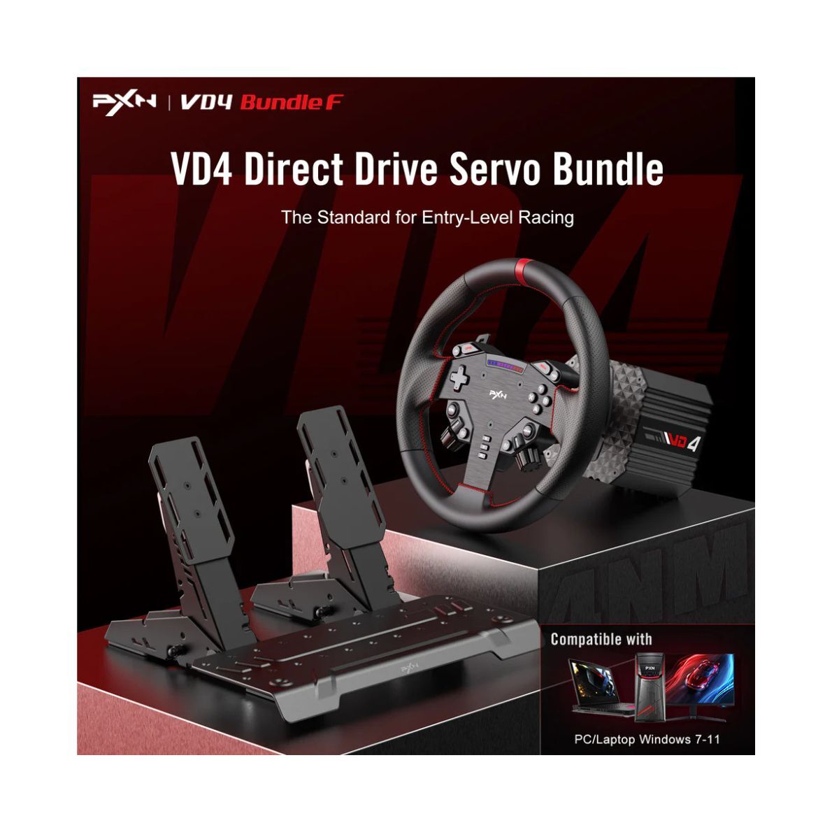 PXN VD4 Bundle F Direct Drive Racing Wheel with 4Nm Torque Pedals and LED RPM for PC Sim Racing