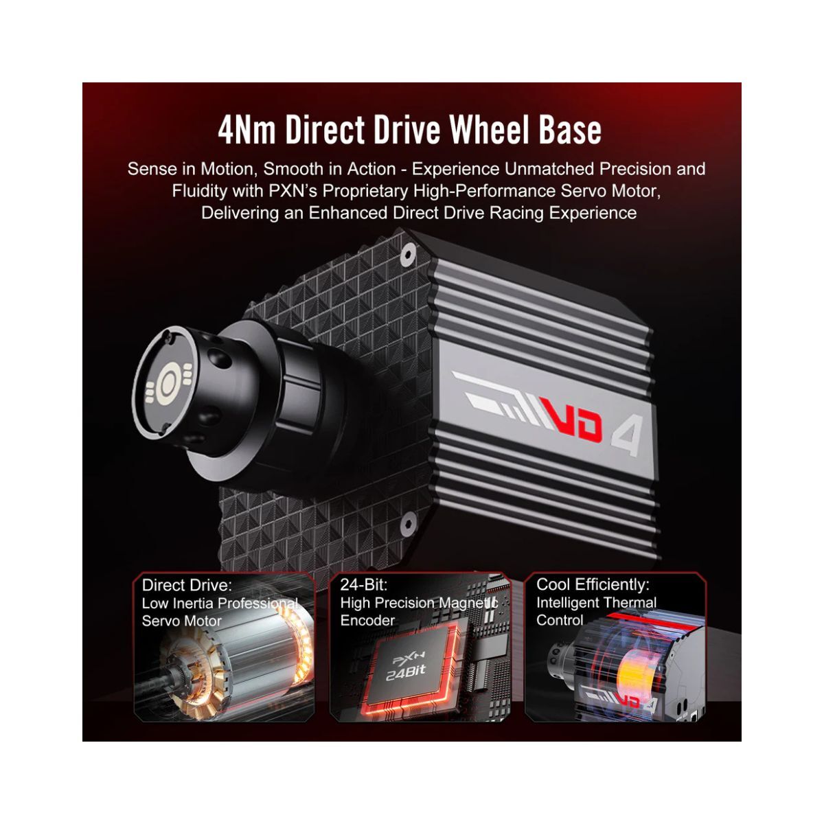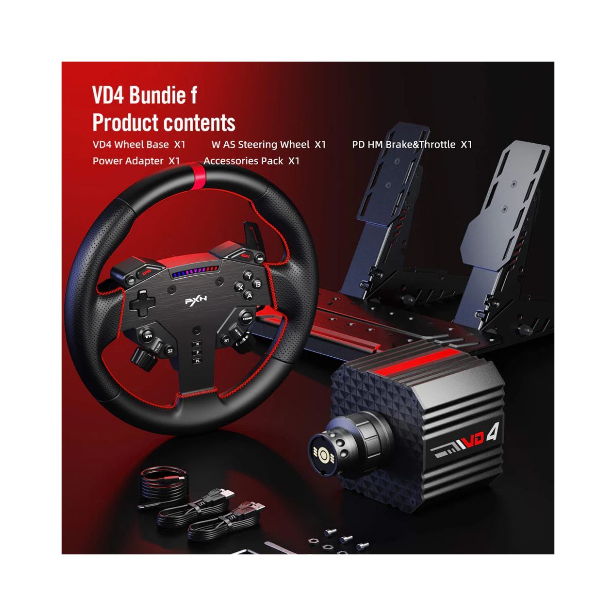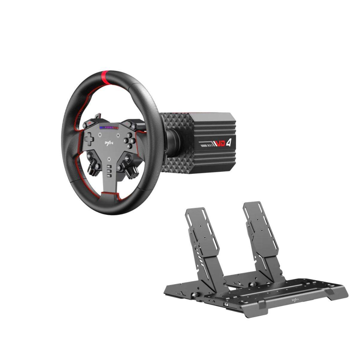 Experience a new level of precision and immersion with the PXN VD4 Bundle F Direct Drive Racing Simulator Racing Wheel. Featuring a custom servo direct drive motor delivering a constant 4Nm torque, this high-performance racing wheel offers ultra-responsive control for serious sim racing enthusiasts. The 24-bit high-precision magnetic encoder ensures accurate input detection, while the intelligent temperature control system maintains consistent performance during extended sessions.