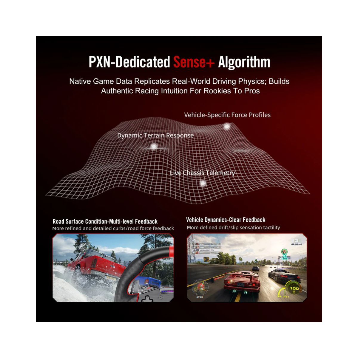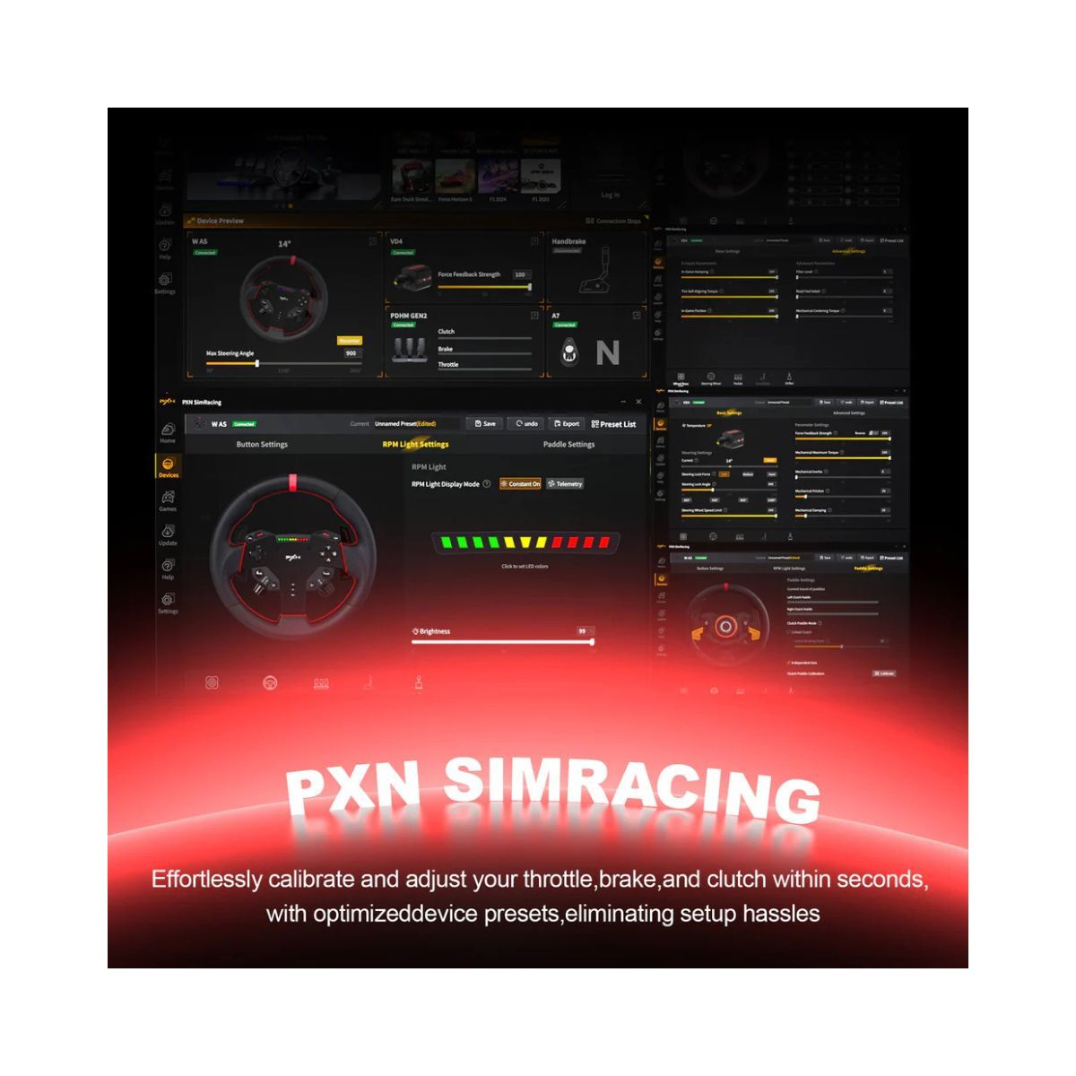 Fully Adjustable Customise performance with PXN SimRacing software and LED RPM lights for optimal racing feedback.