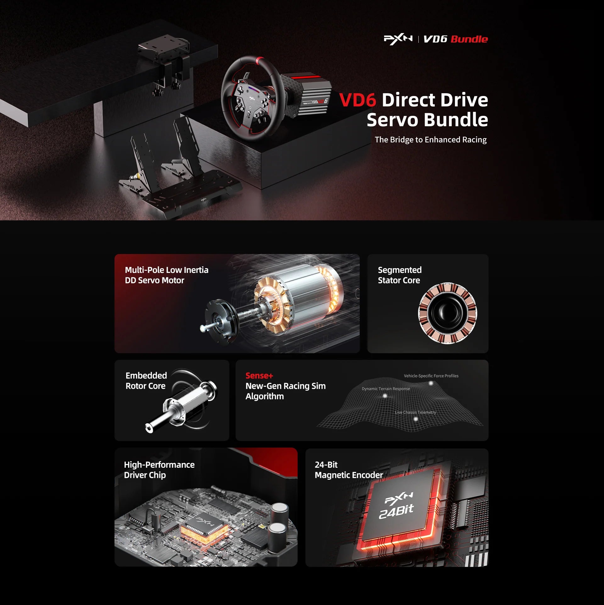 - High-Precision Steering 24-bit magnetic encoder ensures accurate input and natural handling.
