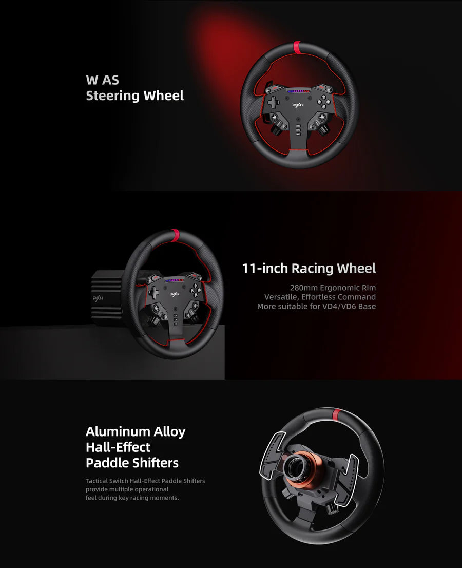 Take your sim racing to the next level with the PXN VD6 Bundle, engineered for precision, durability, and realism. Featuring a 6 Nm servo direct-drive motor, 280 mm ultra-fibre leather steering wheel, and Hall-sensor pedal set, this bundle is designed for racers who demand professional-grade performance.